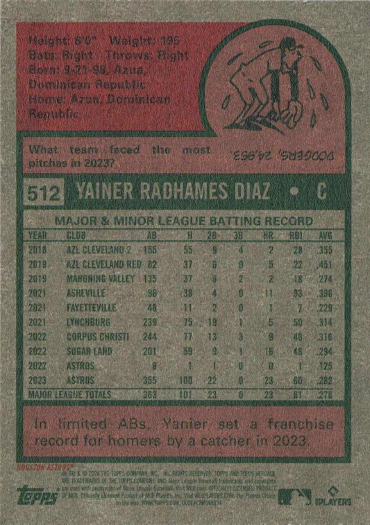 2024 Topps Heritage Yainer Díaz Houston Astros #512