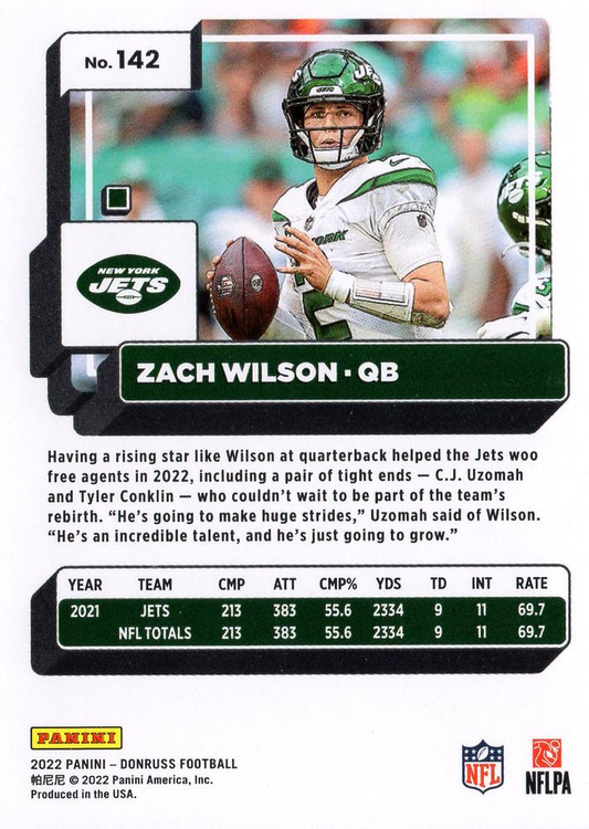 2022 Panini Donruss Zach Wilson #142 New York Jets