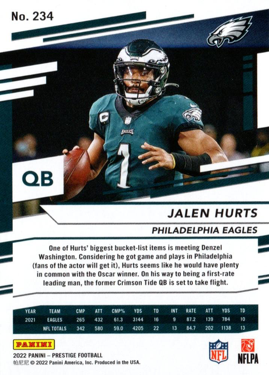 2022 Panini Prestige Jalen Hurts #234 Philadelphia Eagles