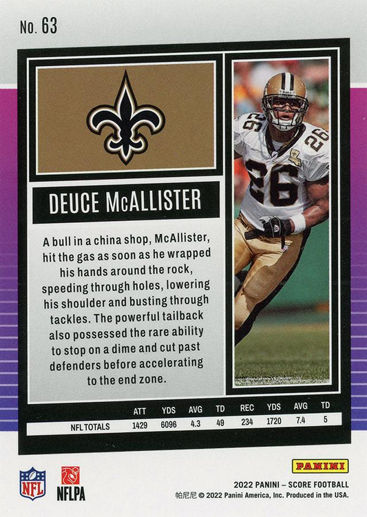 2022 Panini Score Deuce McAllister New Orleans Saints #63