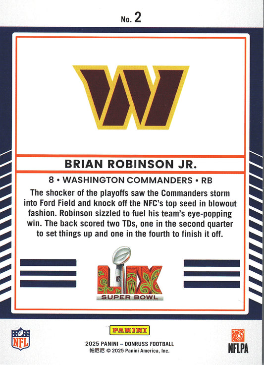 2025 Panini Donruss Road to Super Bowl Brian Robinson Jr #2 Commanders