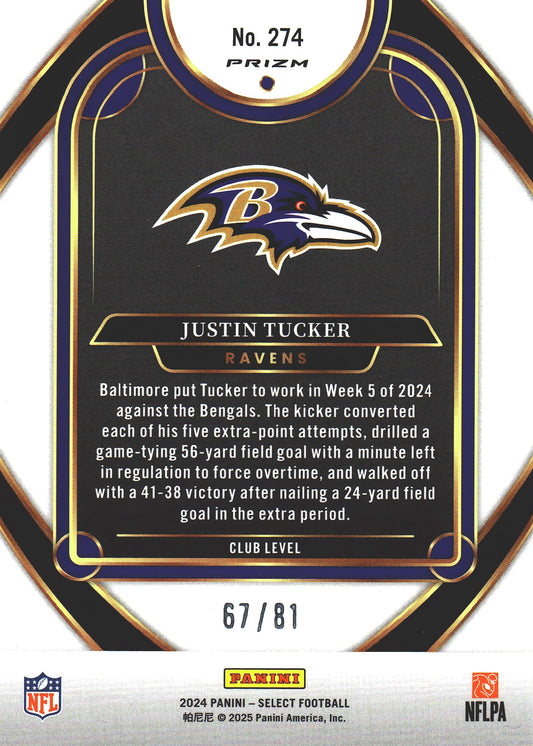 2024 Panini Select Dragon Scale Justin Tucker /81 #274 Baltimore Ravens