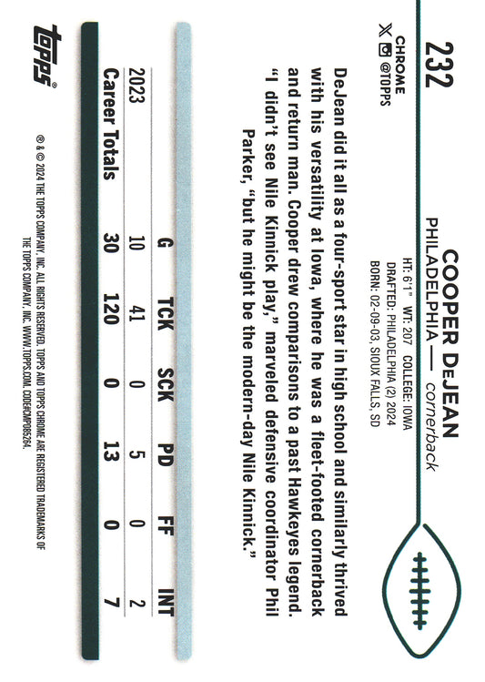 2024 Topps Chrome Cooper DeJean X-Fractor RC #232 Philadelphia Eagles