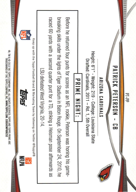 2013 Topps Prime PrimeTimers Patrick Peterson #PT-PP Arizona Cardinals
