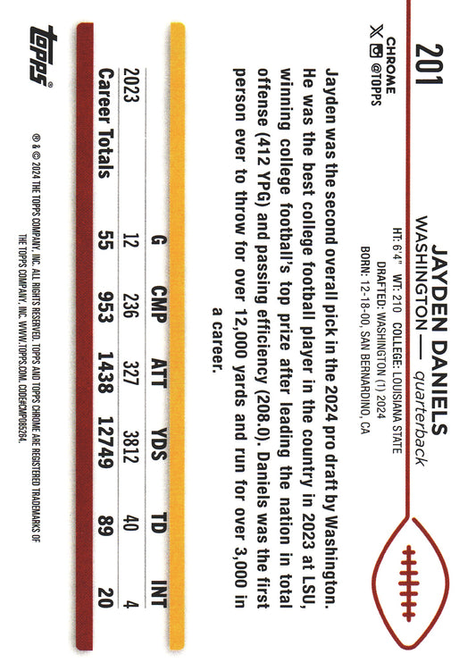 2024 Topps Chrome Jayden Daniels RC #201 Commanders