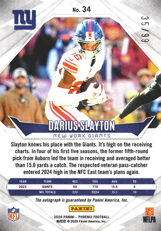 2024 Panini Phoenix Red Autograph /99 Darius Slayton #34 New York Giants