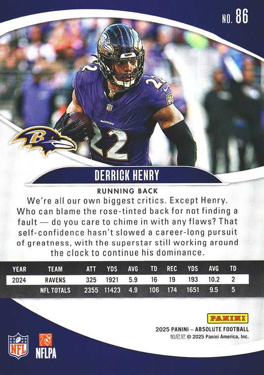 2025 Panini Absolute Hobby Derrick Henry #86 Baltimore Ravens
