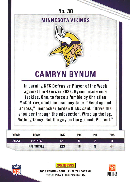 2024 Panini Donruss Elite Camryn Bynum #30 Minnesota Vikings