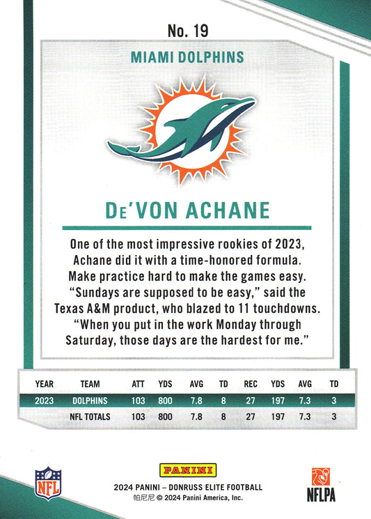 2024 Panini Donruss Elite De'Von Achane #19 Miami Dolphins