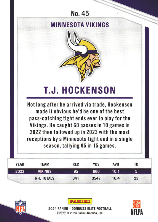 2024 Panini Donruss Elite T.J. Hockenson #45 Minnesota Vikings