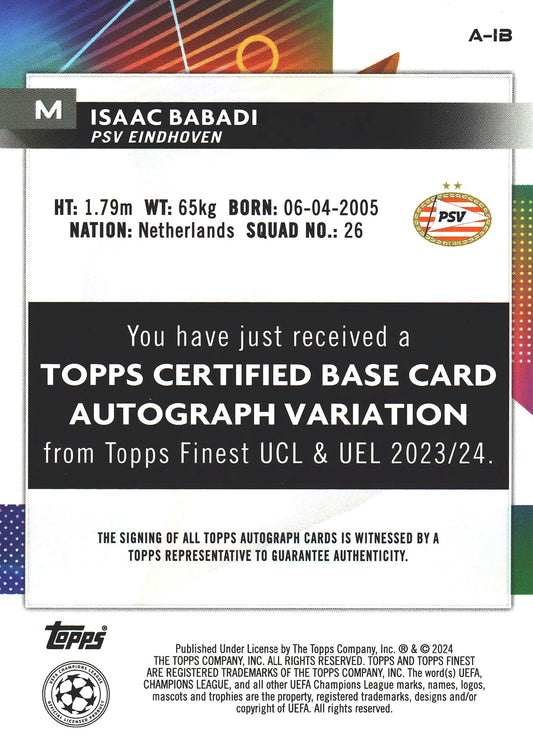 2023 Topps Finest UCC Purple Shimmer /199 Isaac Babadi #A-IB PSV Eindhoven