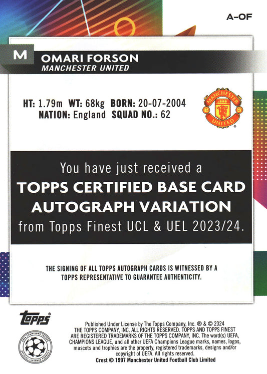 2023 Topps Finest UCC Autograph Omari Forson RC #A-OF Manchester United
