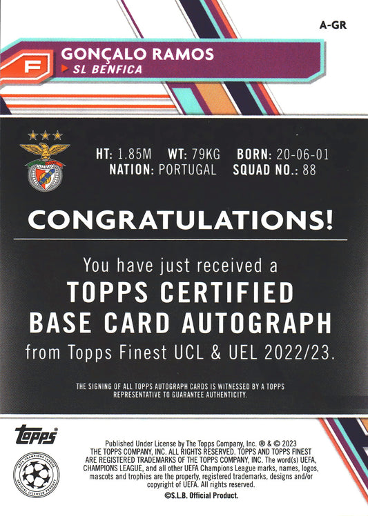 2022 Topps Finest UCC Autograph Goncalo Ramos #A-GR SL Benfica