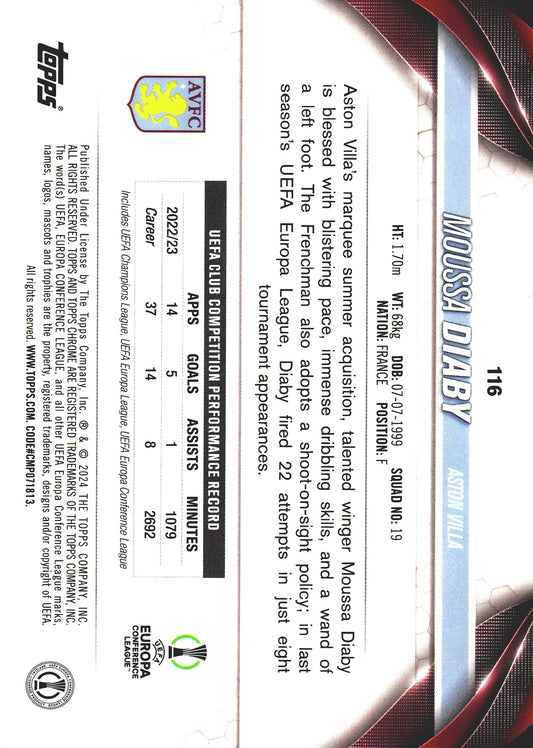 2023 Topps Chrome UCC Sapphire Yellow /75 Moussa Diaby #116 Aston Villa