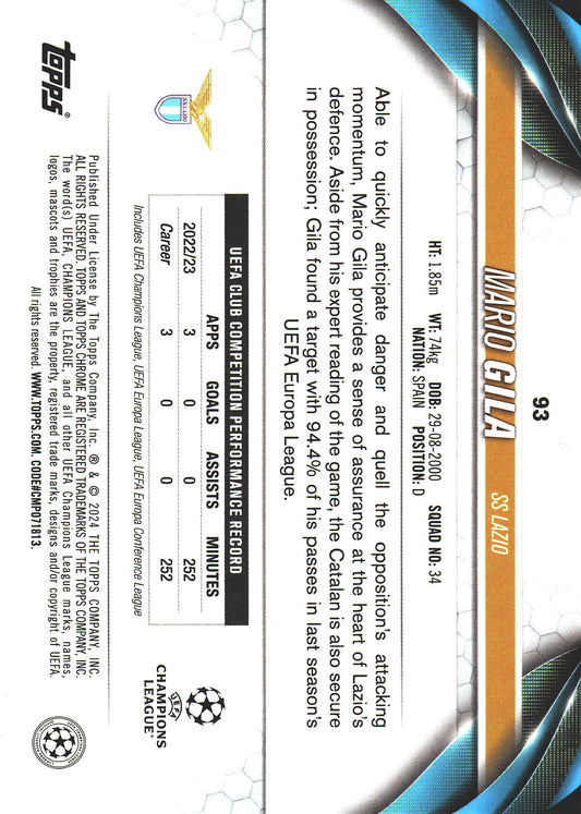 2023 Topps Chrome UCC Sapphire Gold /50 Mario Gila #93 Lazio Rome