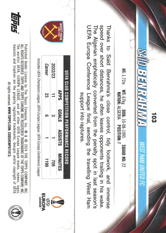 2023 Topps Chrome UCC Sapphire Gold /50 Said Benrahma #103 West Ham United