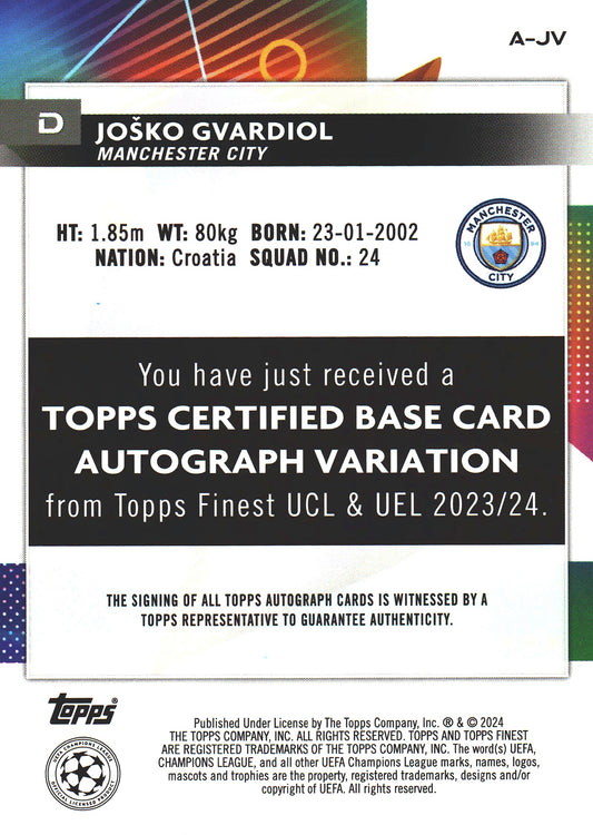 2023 Topps Finest UCC Autograph Josko Gvardiol #A-JV Manchester City