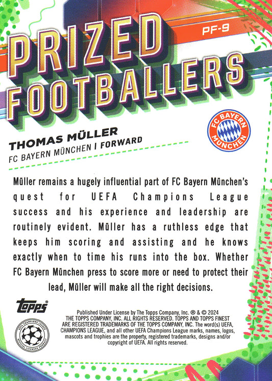 2023 Topps Finest UCC Prized Footballers Purple /299 Thomas Muller #PF-9 Bayern Munich