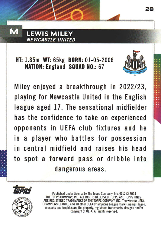 2023 Topps Finest UCC Green /99 Lewis Miley RC #18 Newcastle United