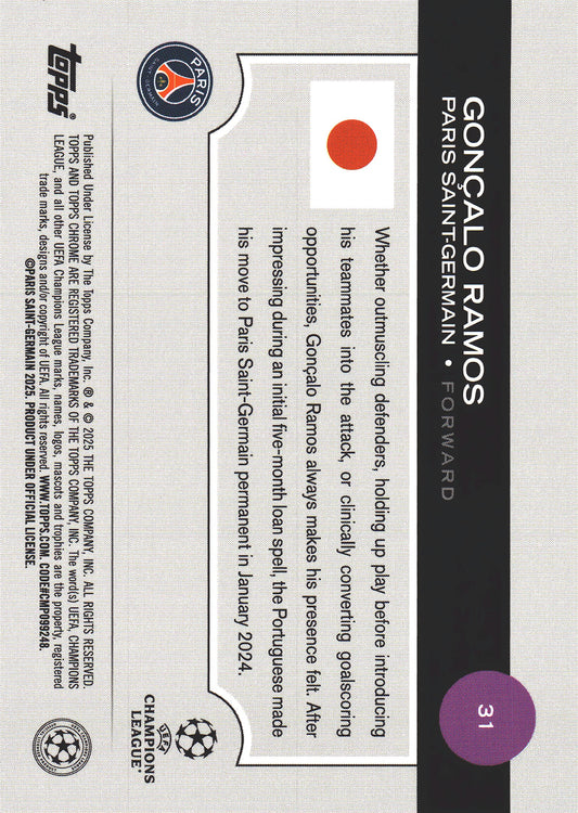 2024 Topps Chrome UCC Japan Fold Mojo /50 Goncalo Ramos #31 Paris Saint-Germain