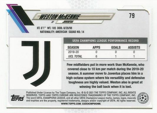 2020 Topps Chrome UCC Weston McKennie #79 Juventus