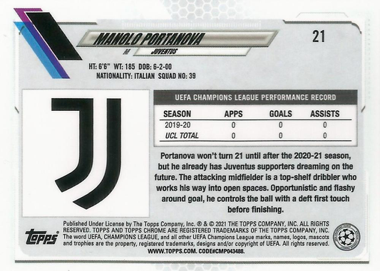 2020 Topps Chrome UCC Manolo Portanova RC #21 Juventus