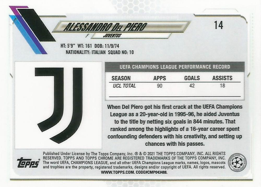 2020 Topps Chrome UCC Alessandro Del Piero #14 Juventus
