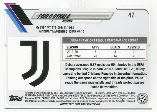 2020 Topps Chrome UCC Paulo Dybala #47 Juventus