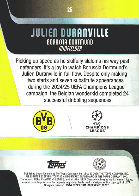 2025 Topps UCC Julien Duranville #25 Borussia Dortmund