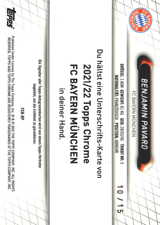 2021 Topps Bayern Munich Chrome Set Autograph /15 Benjamin Pavard #FCB-BP Bayern Munich