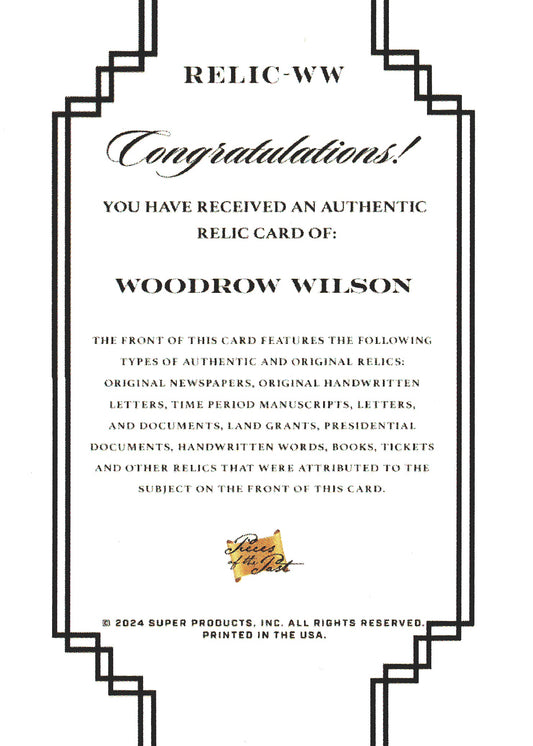 2024 Pieces of the Past Relic Woodrow Wilson #RELIC-WW