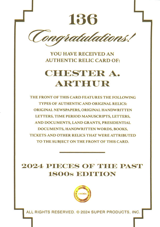 2024 Pieces of the Past Jumbo Manuscript Relic Chester A Arthur #136