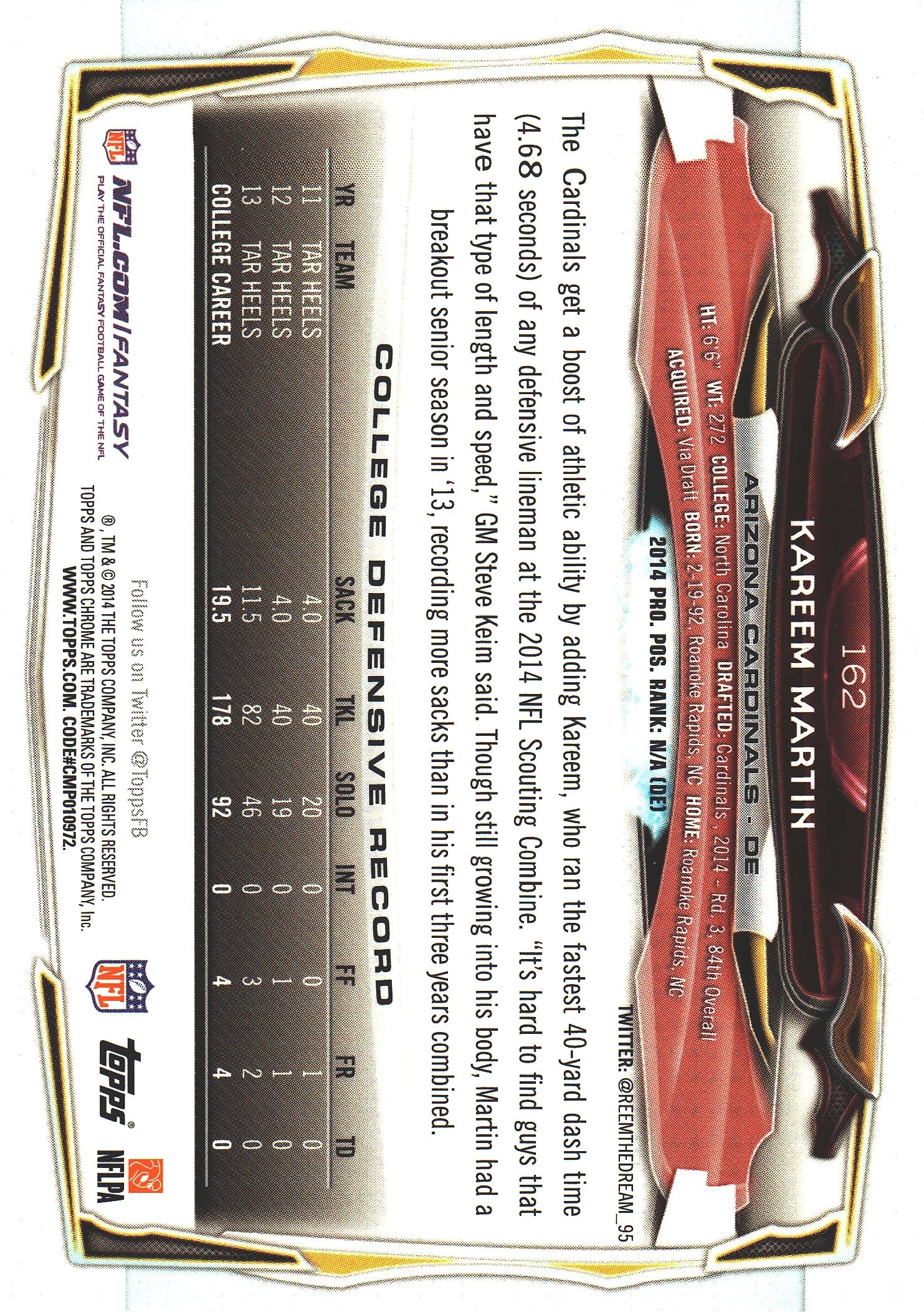 2014 Topps Chrome NFL Kareem Martin RC #162 Arizona Cardinals