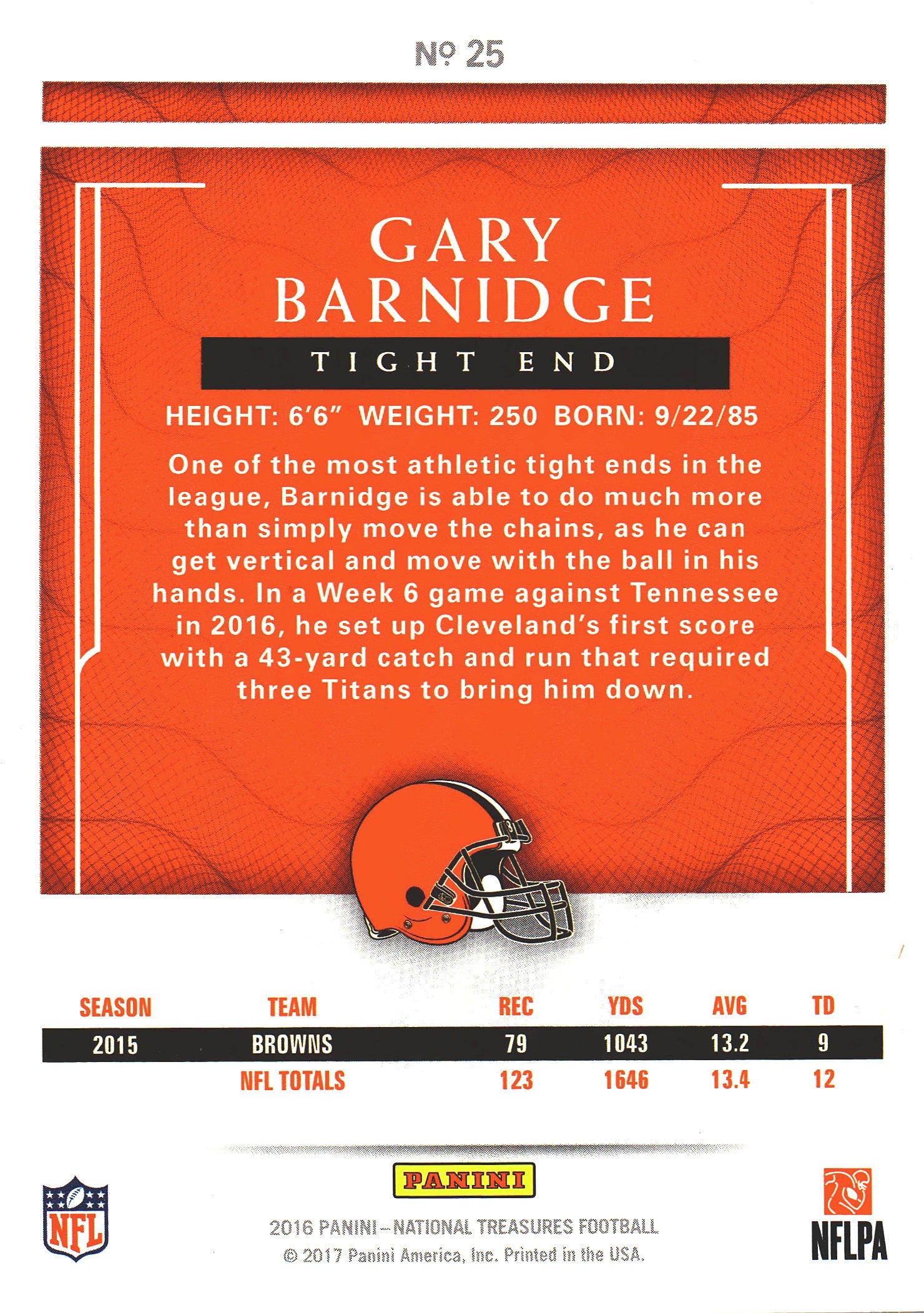 2016 Panini National Treasures Gary Barnidge /10 #25 Cleveland Browns