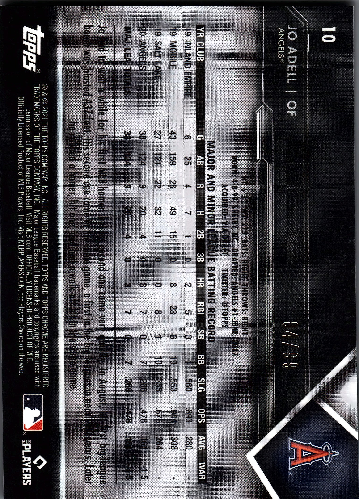 2021 Topps Chrome Black Green Atomic Jo Adell /99 #10 Los Angeles Angels