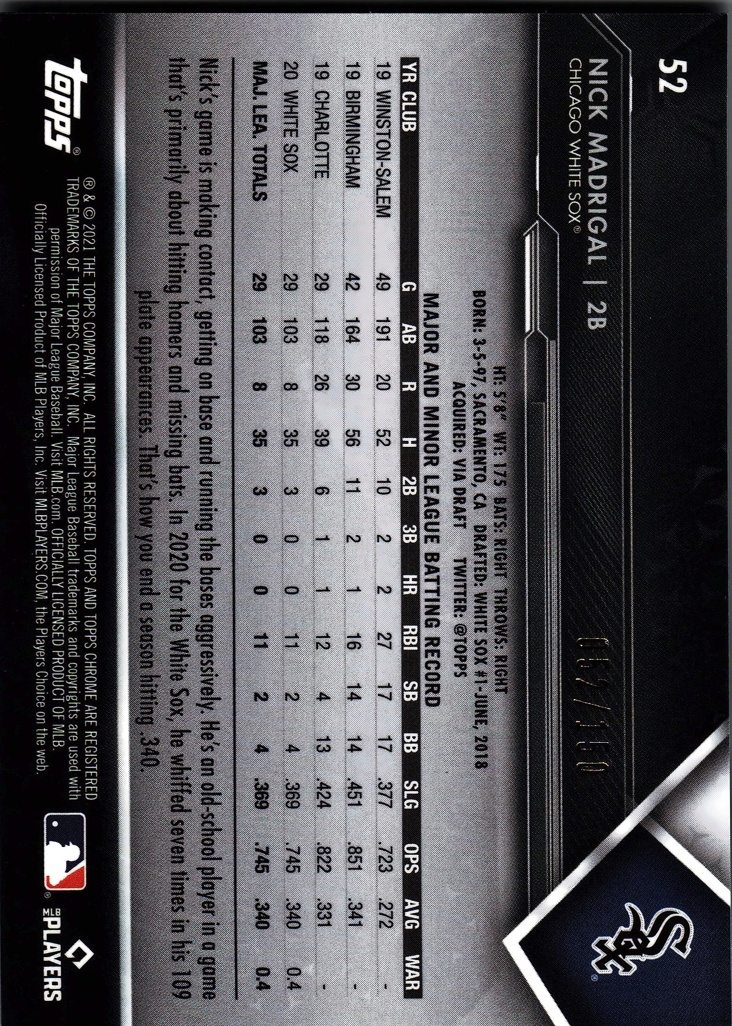 2021 Topps Chrome Black Purple Nick Madrigal /150 #52 Chicago White Sox