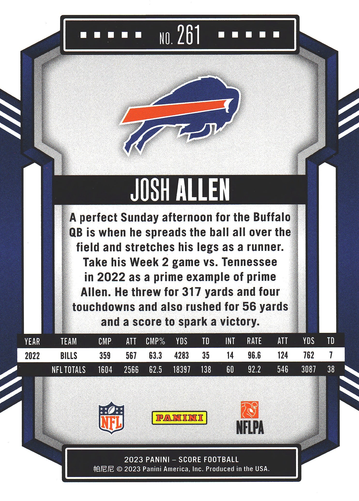 2023 Panini Score Josh Allen #261 Buffalo Bills