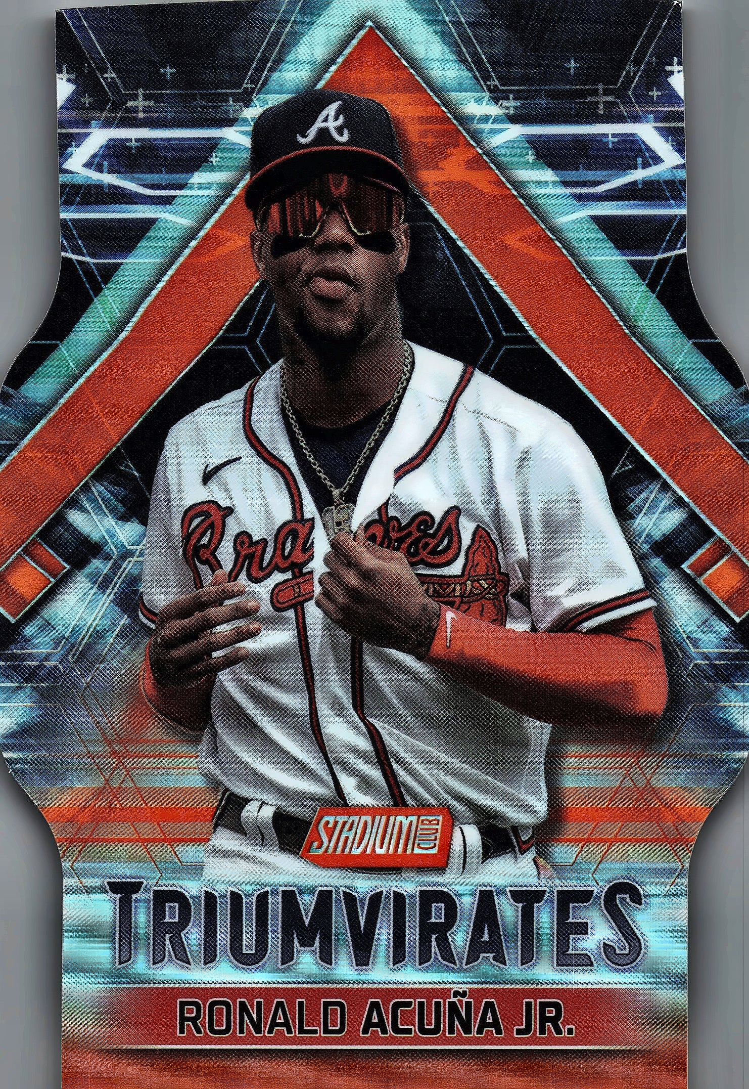 2023 Topps Stadium Club Triumvirates Orange Ronald Acuña Jr. /50 #T-17 Atlanta Braves
