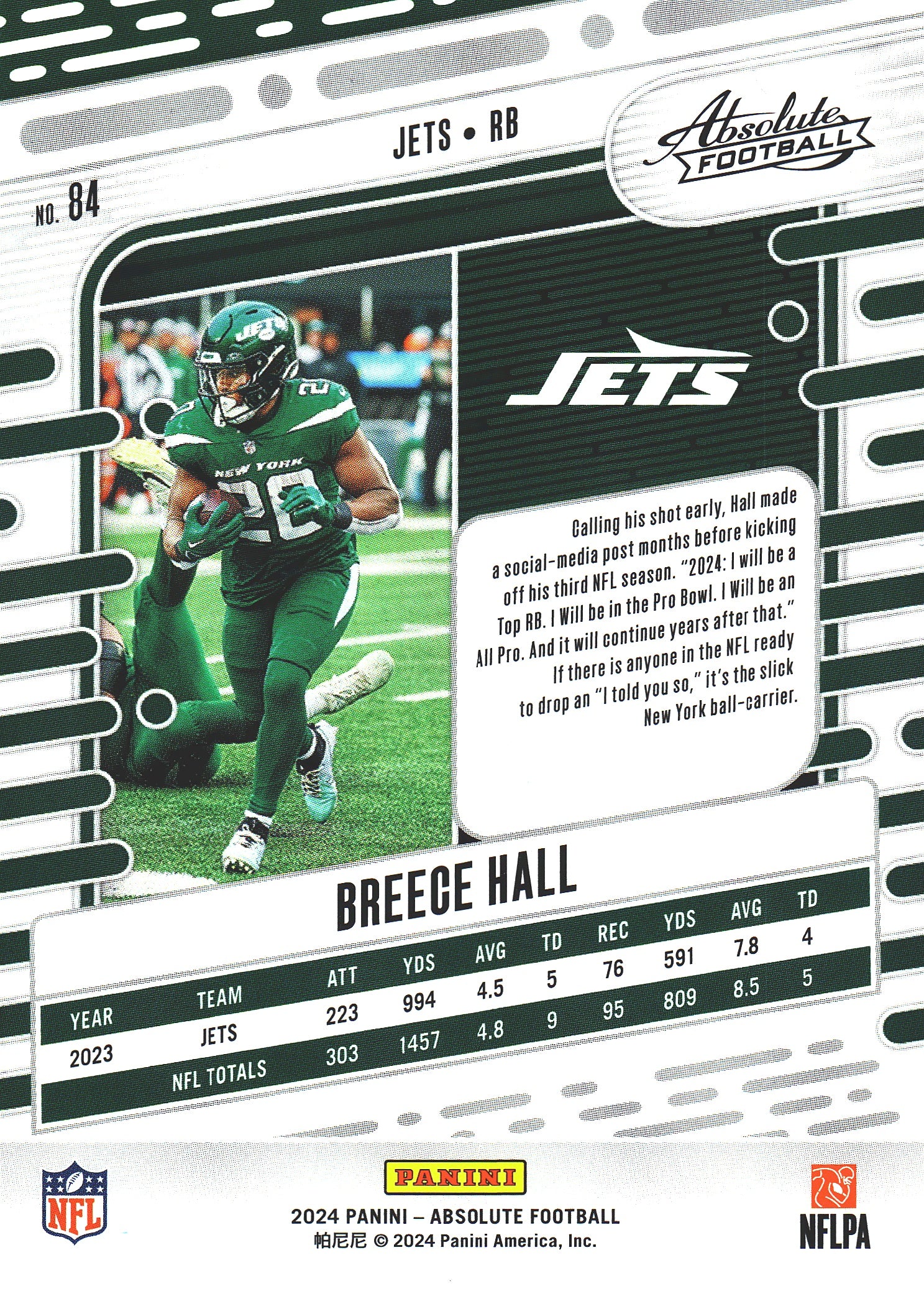 2024 Panini Absolute Breece Hall #84 New York Jets