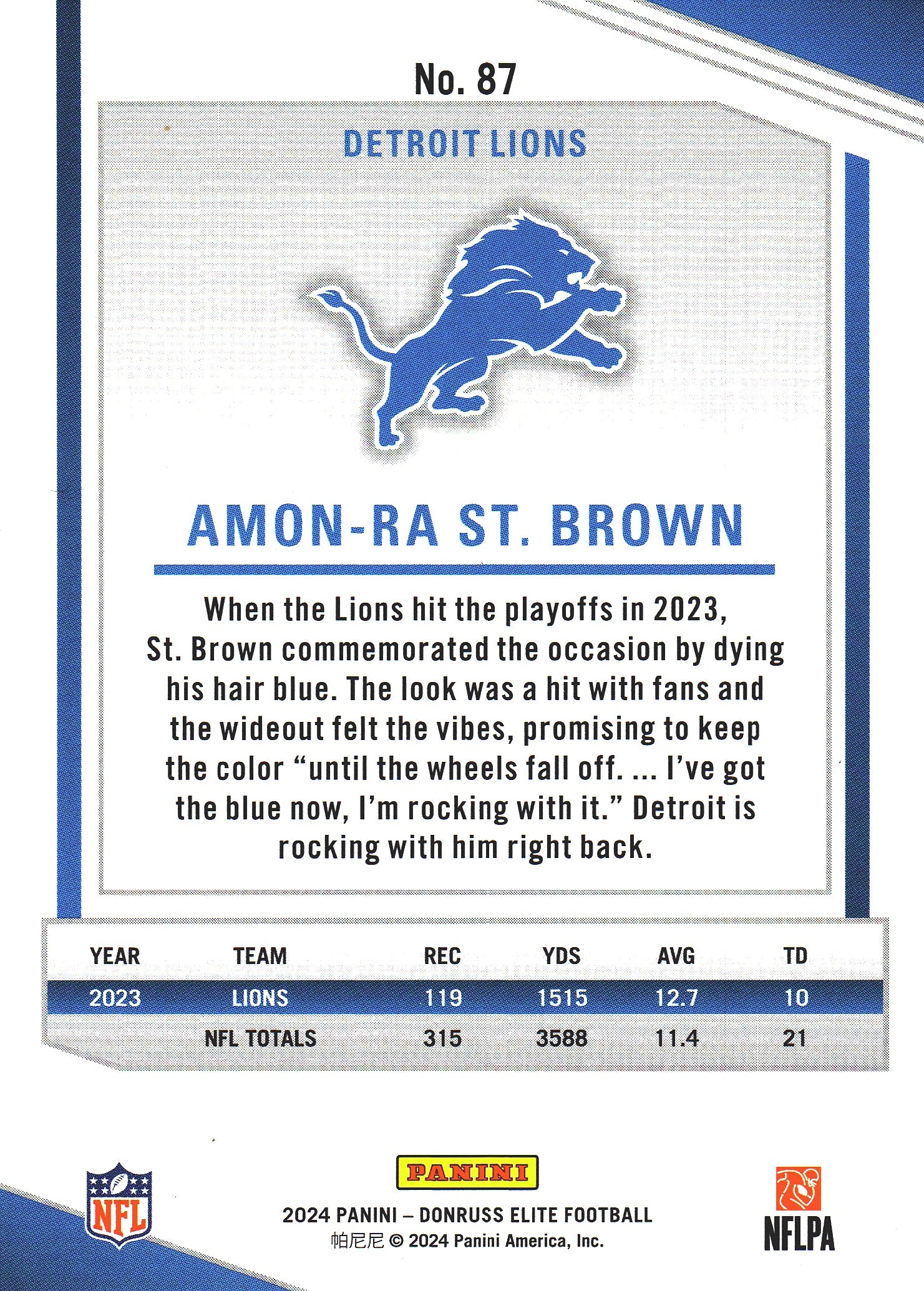 2024 Panini Donruss Elite Amon-Ra St. Brown #87 Detroit Lions