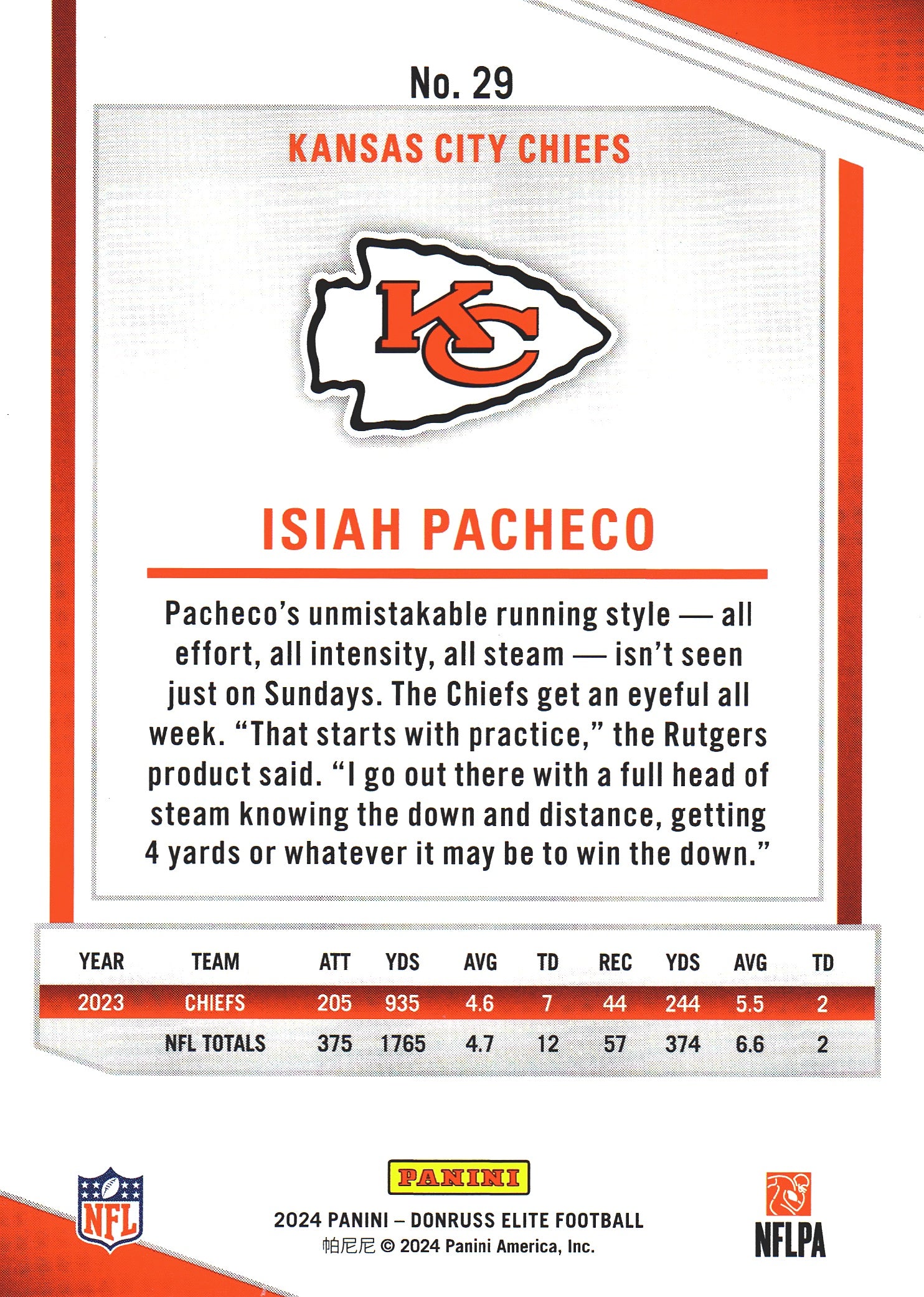 2024 Panini Donruss Elite Isiah Pacheco #29 Kansas City Chiefs