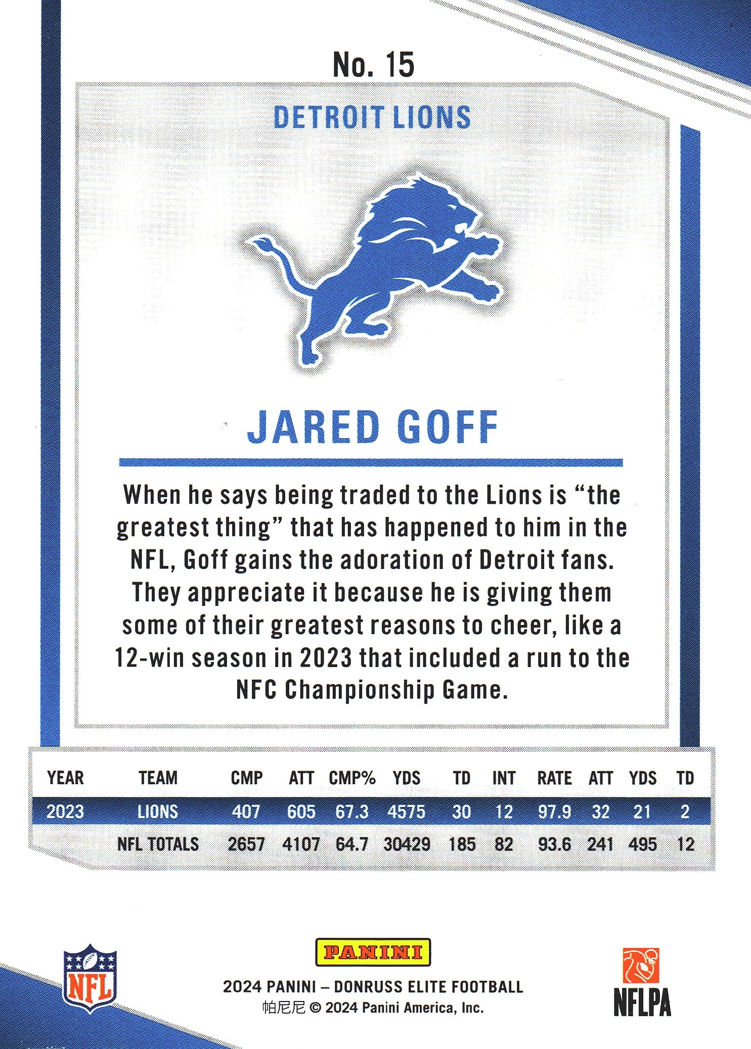 2024 Panini Donruss Elite Jared Goff #15 Detroit Lions