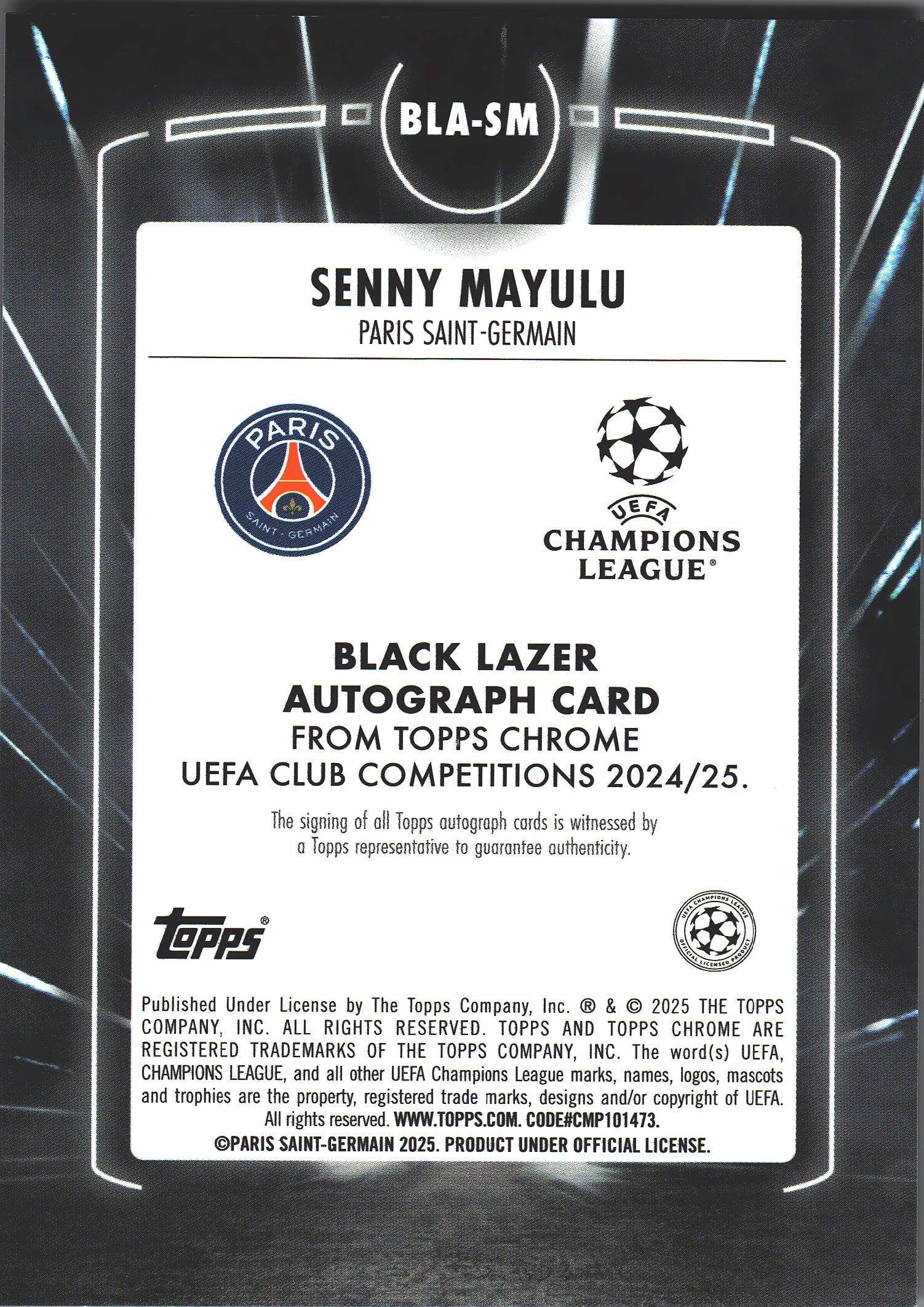 2024 Topps Chrome Autograph Black Lazer Senny Mayulu RC #BLA-SM Paris Saint-Germain