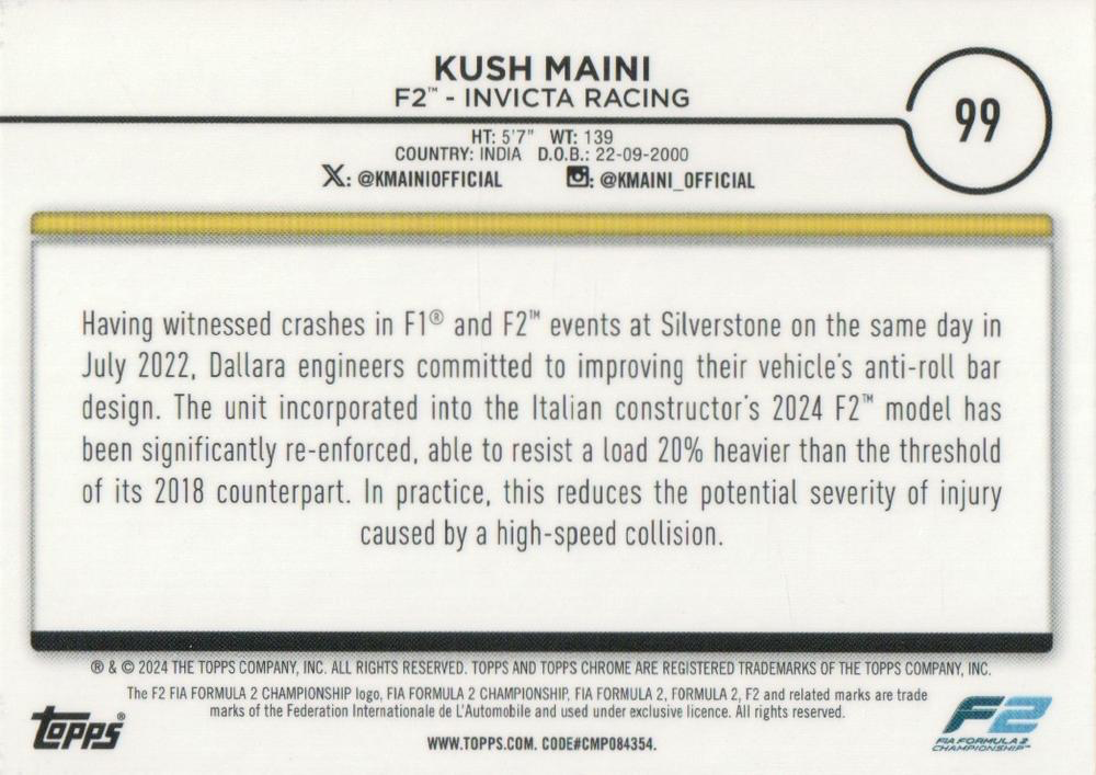 2024 Topps Chrome Formula 1 Kush Maini F2C #99 Invicta Racing