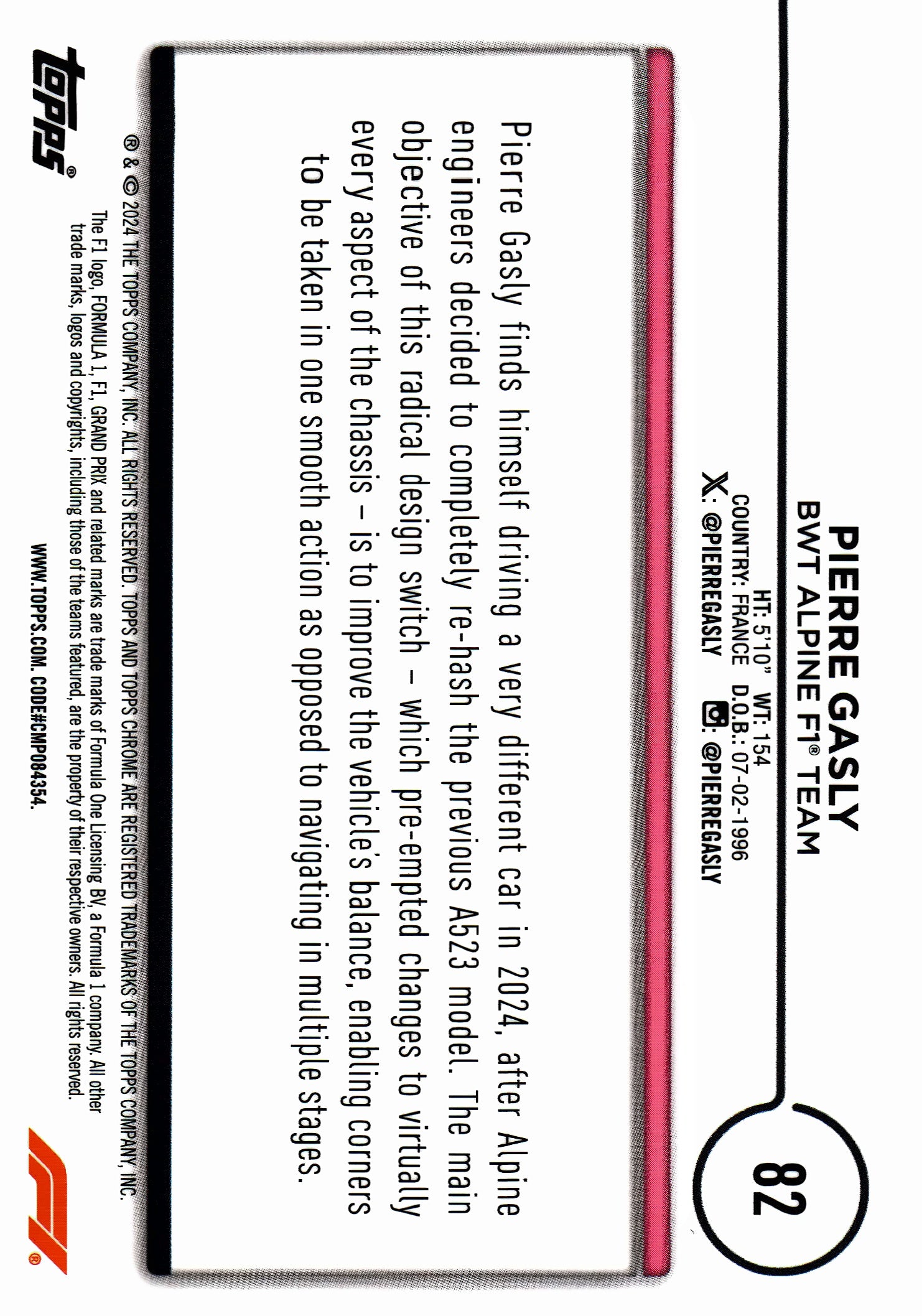 2024 Topps Chrome Sapphire Formula 1 Aqua /99 Pierre Gasly #82 Alpine