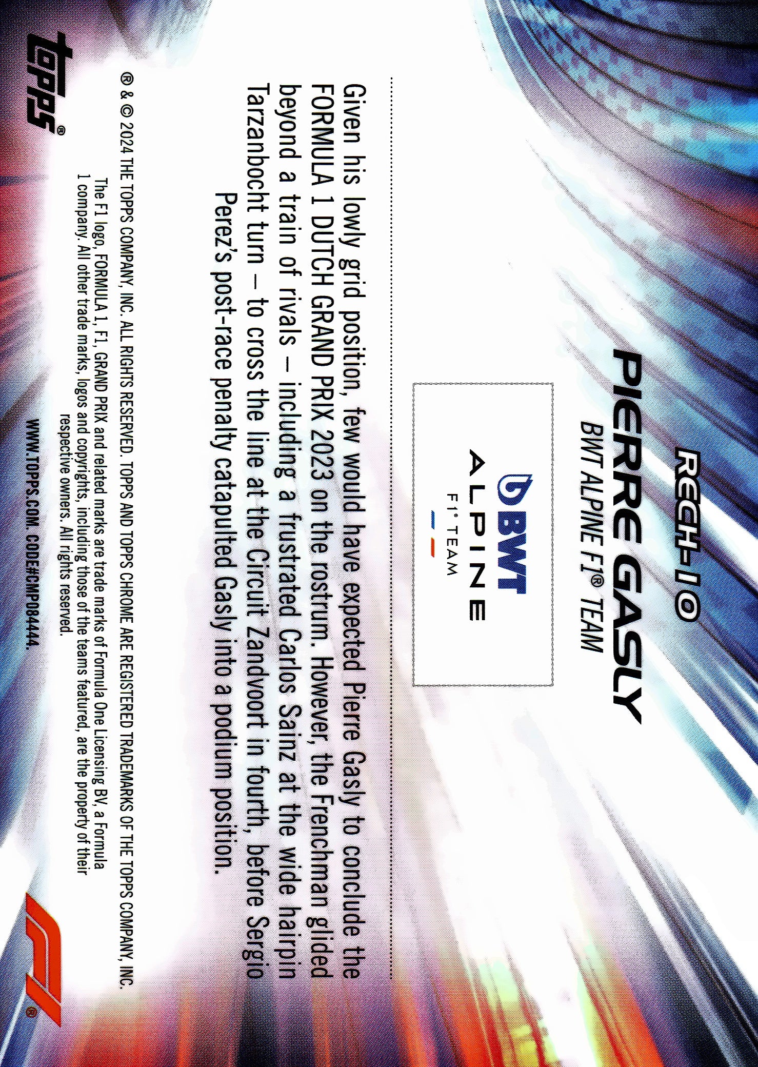 2024 Topps Chrome Sapphire Formula 1 Gold /50 Re-Charged Pierre Gasly #RECH-10 Alpine