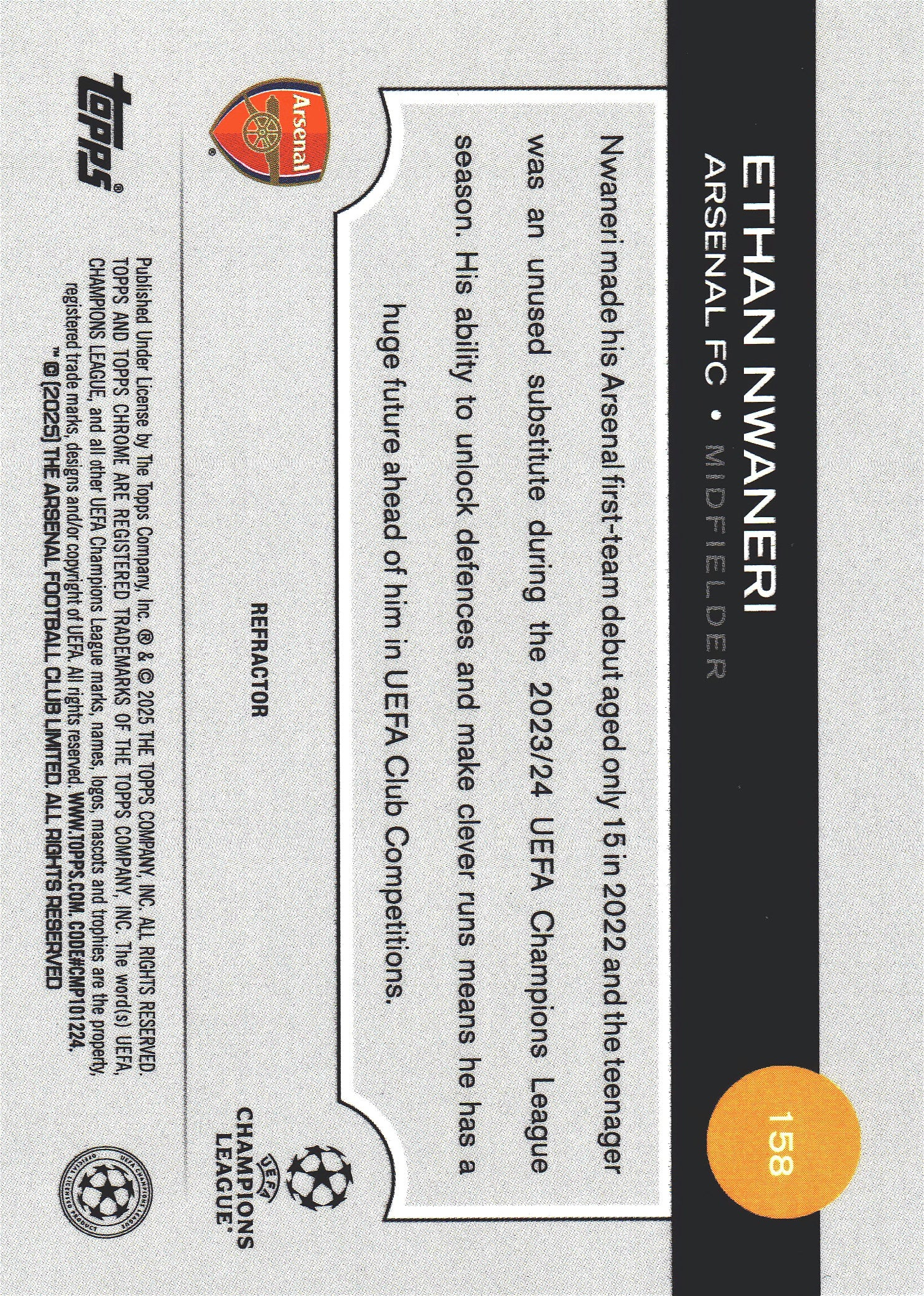 2024 Topps Chrome UCC Refractor Ethan Nwaneri RC #158 Arsenal
