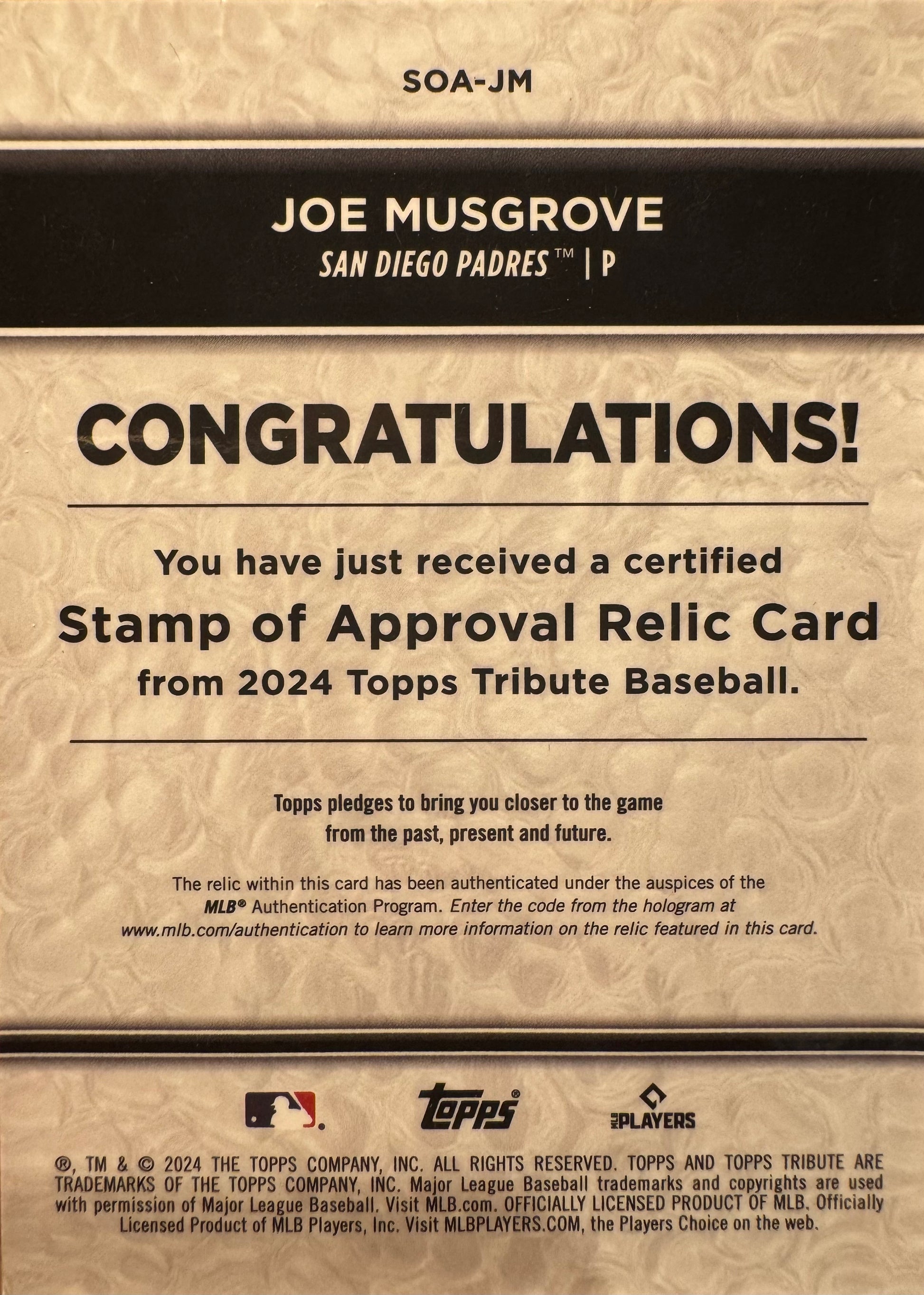 2024 Topps Tribute Relic used Joe Musgrove /199 #SOA-JM San Diego Padres