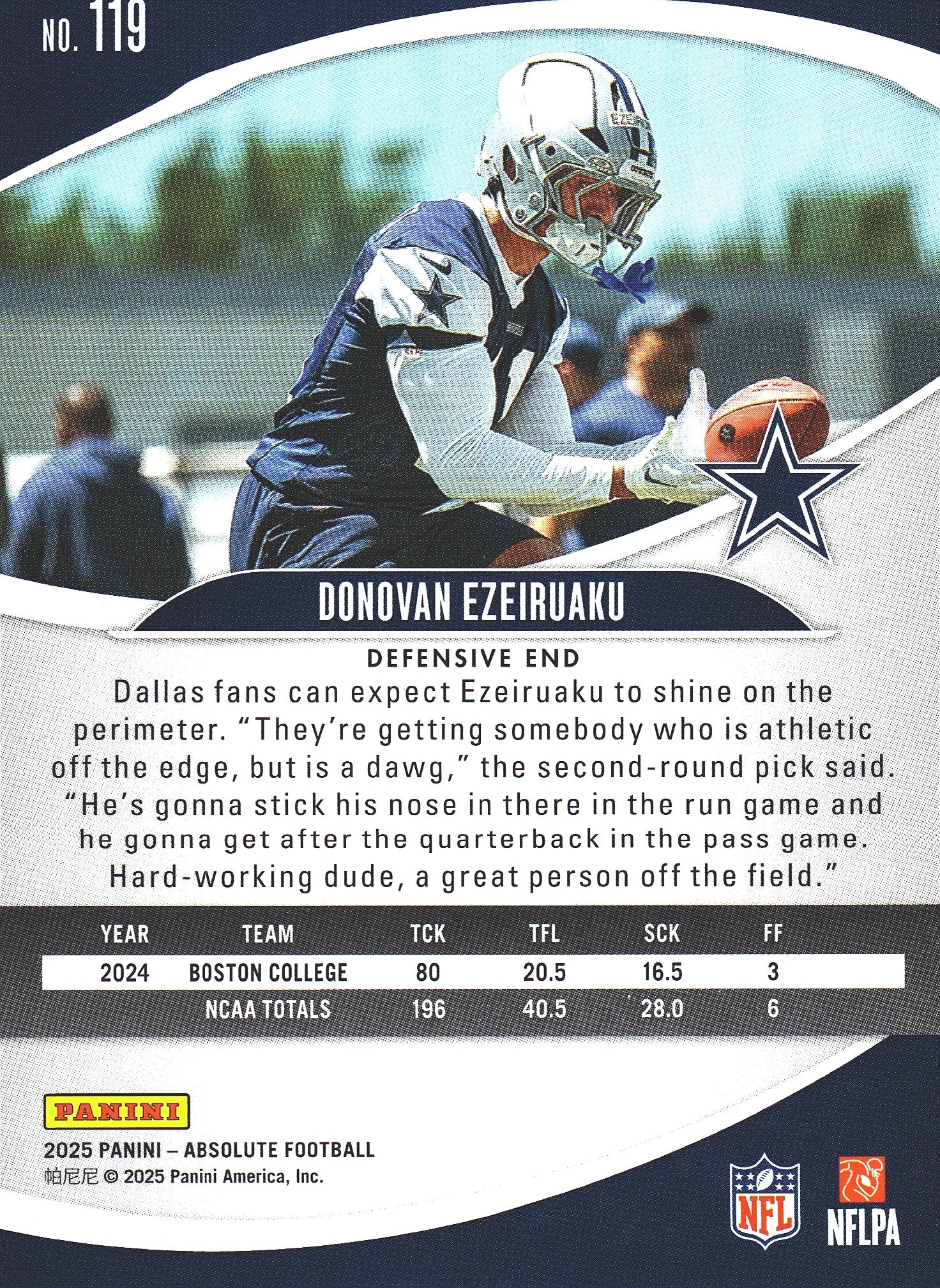 2025 Panini Absolute Hobby Gold /375 Donovan Ezeiruaku #119 Dallas Cowboys