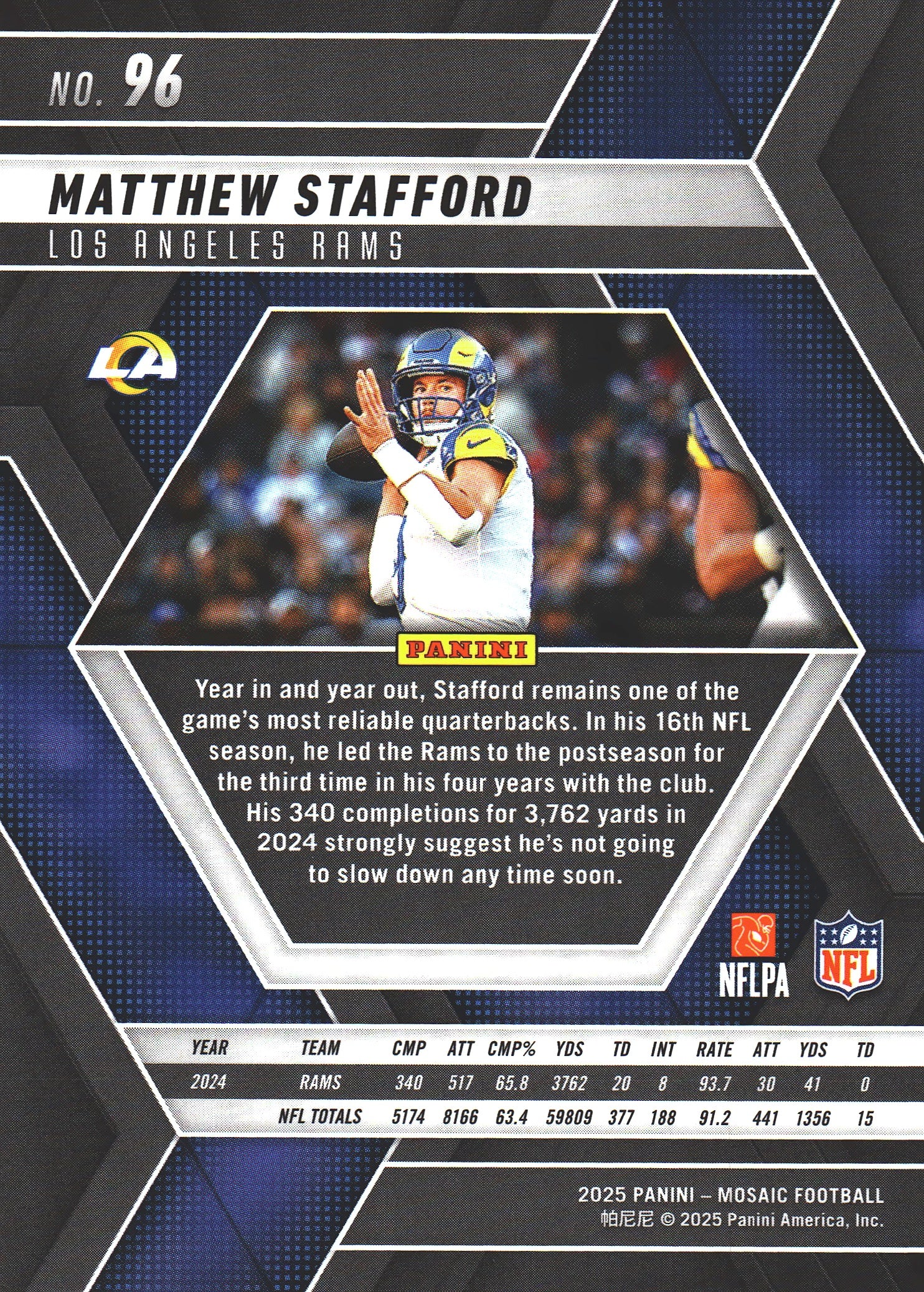 2025 Panini Mosaic Matthew Stafford #96 Los Angeles Rams